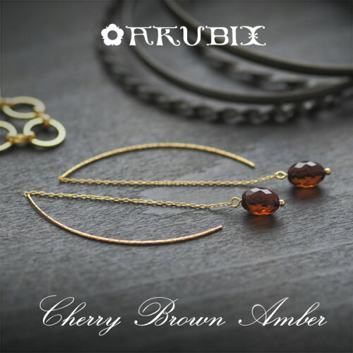 天然琥珀チェリーブラウン スイングゴールドピアス【送料無料】【ak0506】【3ツ星】【ゆうパケット(追跡可能メール便)】【gcsimpi】amber gold 天然石 パワーストーン ギフト 贈り物 プレゼント こはく チェーンピアス お守り ラッピング